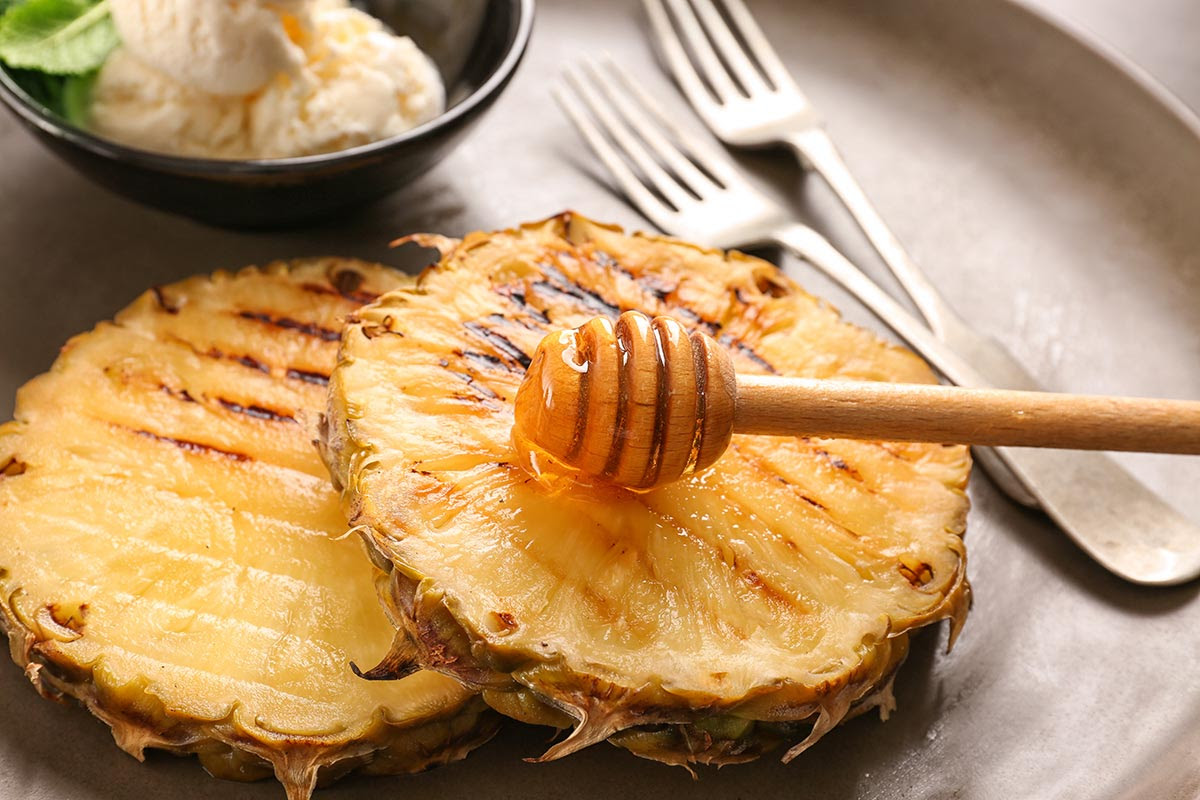 Bir adet büyük boy ananası dilerseniz kabuklarını soyarak, dilerseniz soymadan halka halka dilimleyin. Dilimleri ızgaranıza dizin, eğer ızgaranız yoksa folyoya sararak mangalda, hatta tost makinesinde de pişirebilirsiniz. Pişirmenizin ardından sıcak sıcak servis yapın. Bal ve vanilyalı dondurma ile birlikte mükemmel bir lezzet patlaması yaşayacaksınız.